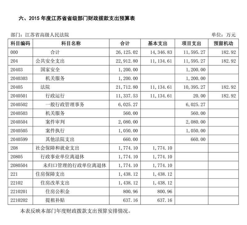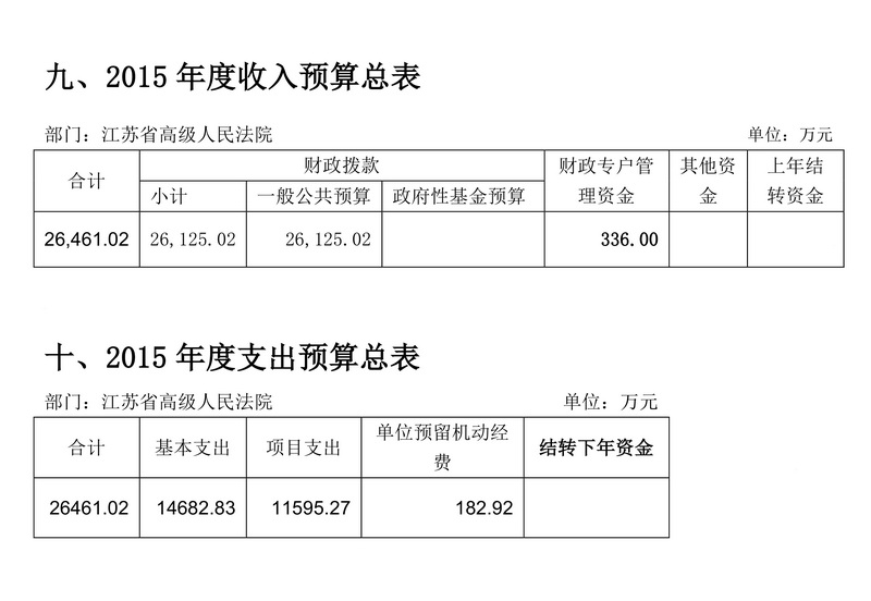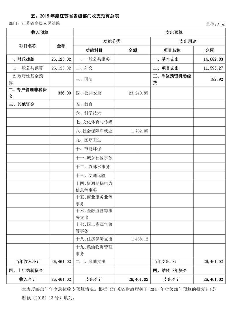 江蘇省高級人民法院2015年支出總預算數26,461.02萬元,其中: