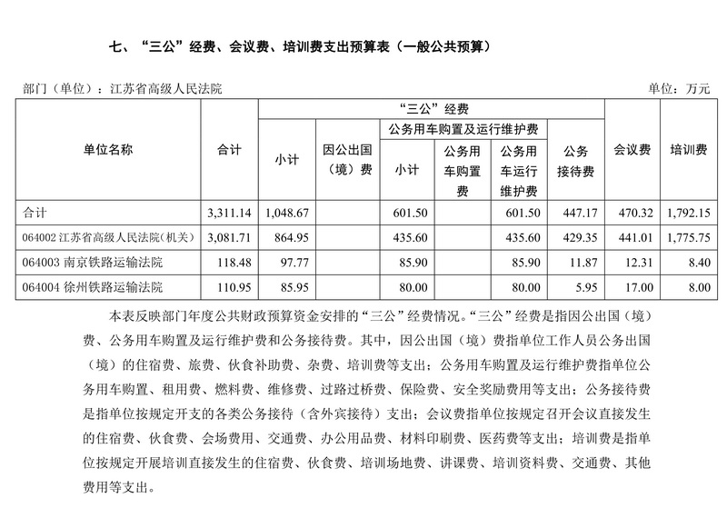 1、基本支出14,682.83萬元。省法院機關12809.53萬元,南京鐵路運輸法院1031.33萬元,徐州鐵路運輸法院841.97萬元。