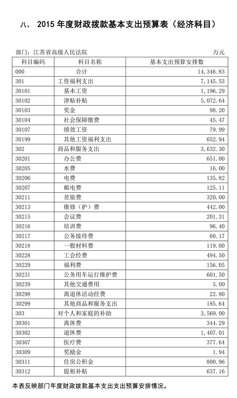 十一、2015年江蘇省高級人民法院部門預算安排情況