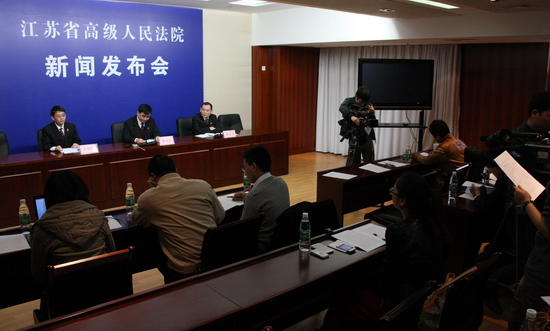 為進一步震懾毒品犯罪行為,凈化社會治安環(huán)境,開展毒品犯罪案件集中宣判活動,2013年11月14日,江蘇省高級人民法院召開打擊毒品犯罪新聞發(fā)布會。省高院副院長李玉生通報了近年來我省法院審理涉毒案件的基本情況。省高院新聞發(fā)言人王明新主持發(fā)布會。省高院刑三庭庭長蘇學增參加發(fā)布會并回答了記者的提問。