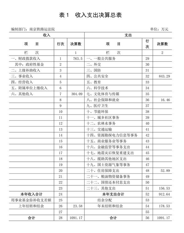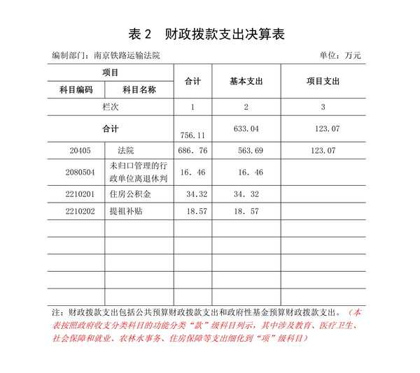 2013年度省級部門決算公開 南京鐵路運輸法院