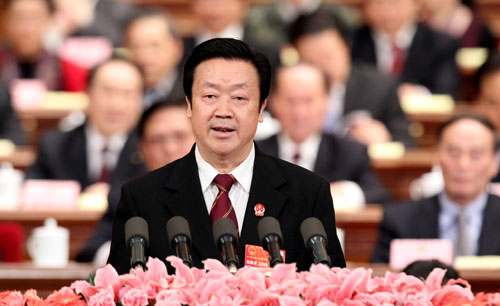 各位代表,面對新形勢下的發展機遇和挑戰,人民法院將在以胡錦濤同志為總書記的黨中央堅強領導下,高舉中國特色社會主義偉大旗幟,以鄧小平理論和“三個代表”重要思想為指導,深入貫徹落實科學發展觀,嚴格履行憲法和法律賦予的職責,為全面落實依法治國基本方略、加快建設社會主義法治國家、奪取全面建設小康社會新勝利做出新的更大的貢獻!