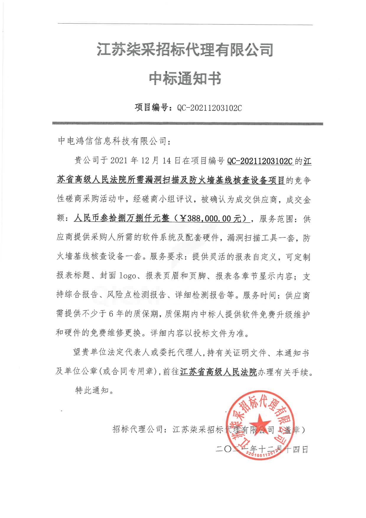 中標公示--江蘇省高級人民法院漏洞掃描及防火墻基線核查設備中標公示.pdf