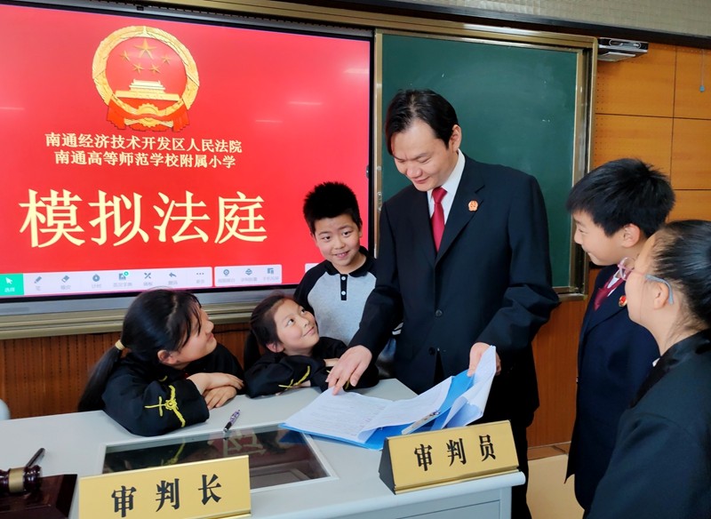 南通開發區法院法官走進校園助力小學生開展模擬法庭活動